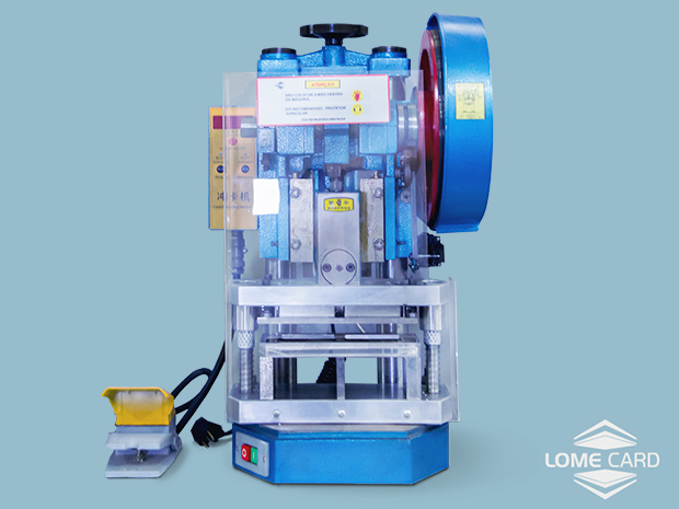 A máquina cortadora de crachás vem na tensão de 220 volts. Aumenta o rendimento de produção e qualidade do produto final.